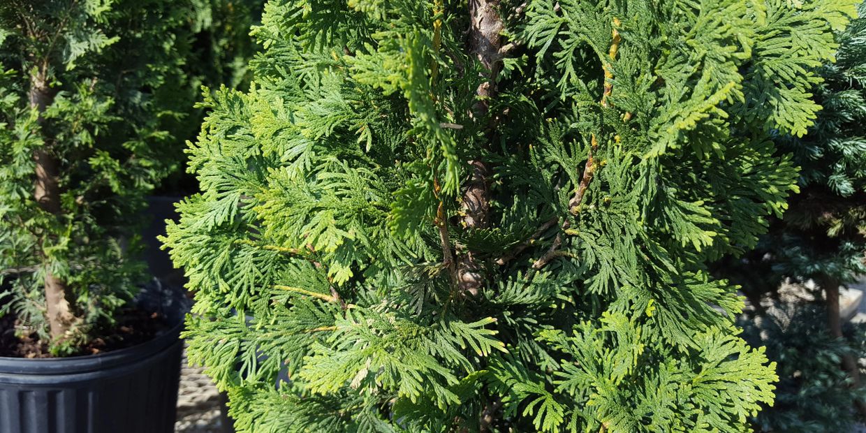 Narrow, pyramidal shaped tree with rich green foliage
