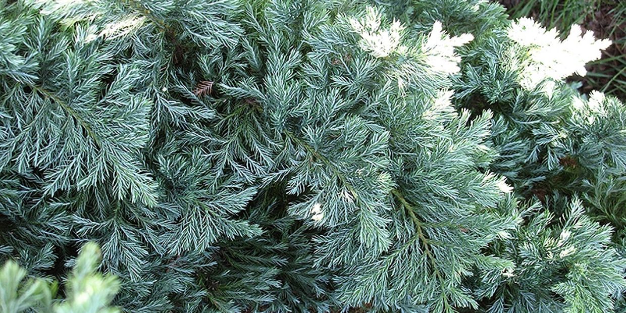 Dense, pyramidal shaped semi dwarf evergreen featuring soft, silvery blue-gray foliage.